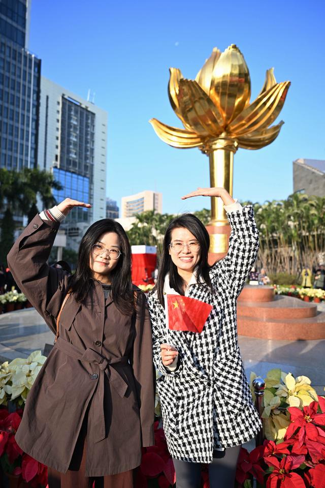 澳门特别行政区政府在金莲花广场举行升旗仪式,庆祝澳门特别行政区回归祖国25周年。