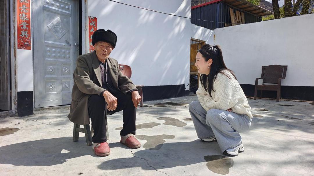 图为何小青(右)生前走访村民家中(金川县融媒)
