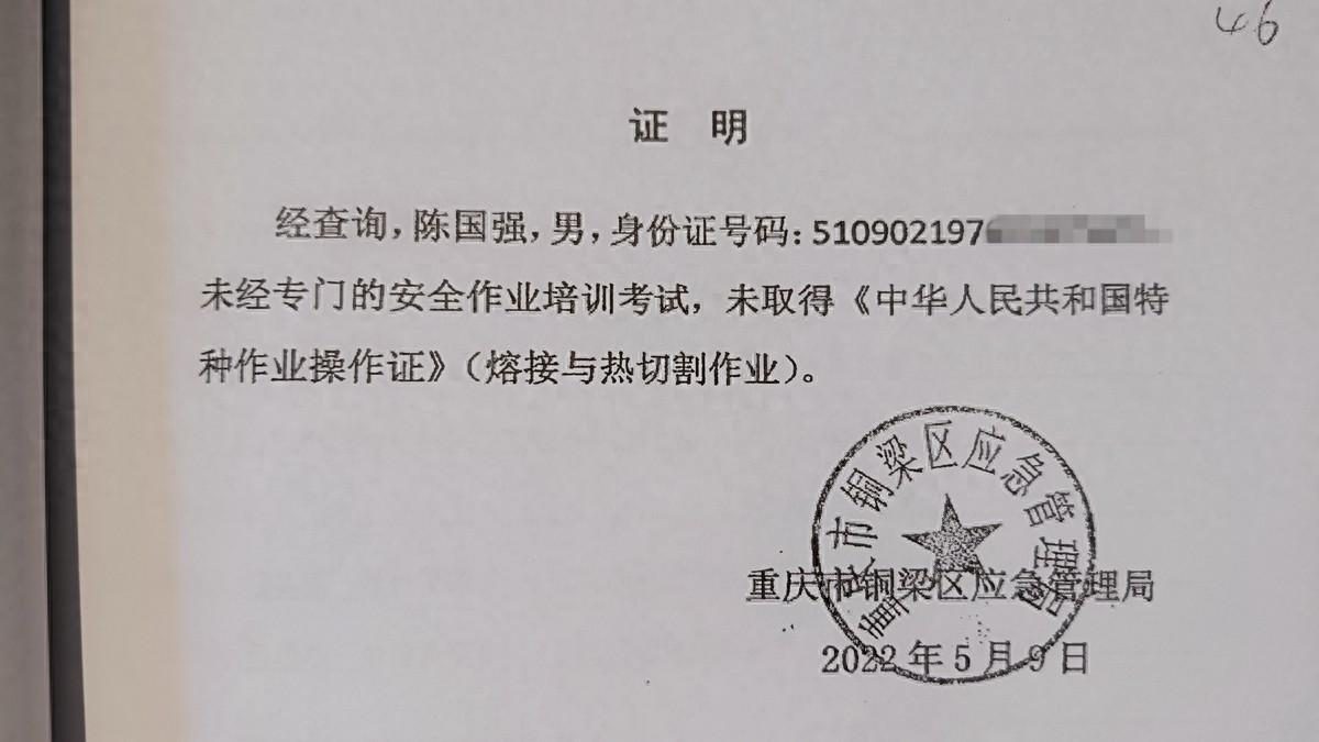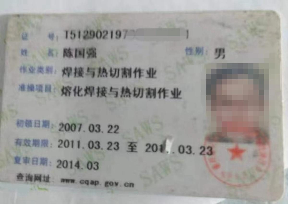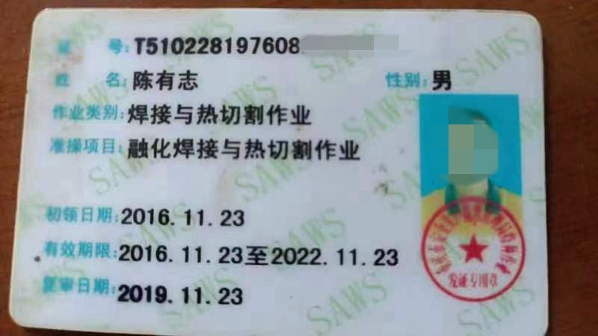 ▲死者和伤者的特种行业操作证证据照片