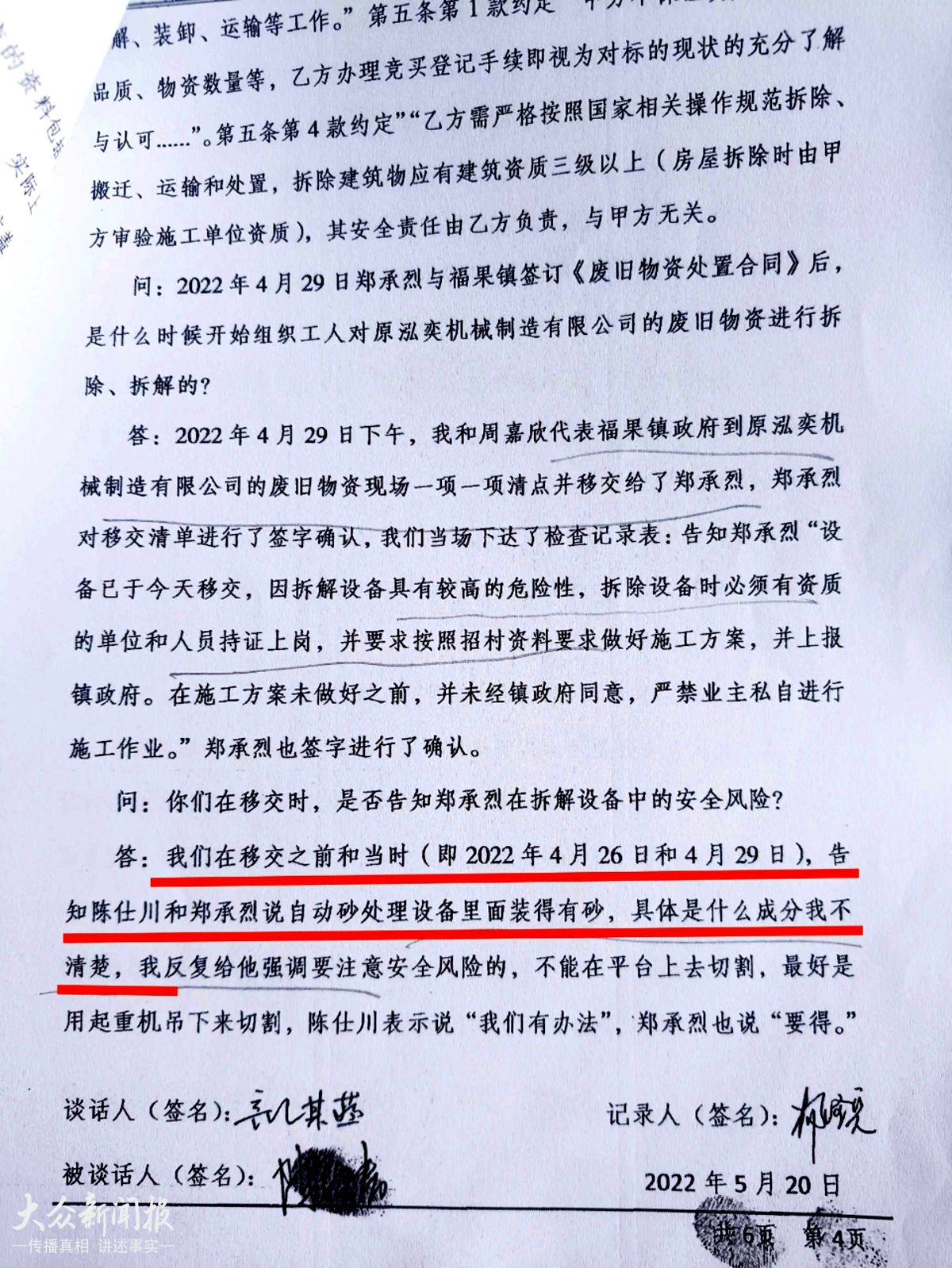 (应急局认定镇政府已告知事情的危险性并签字确认,在本次事故中不存在履职不到位的问题,业主却不承认郑承烈三个字他本人所签,而是政府为逃避责任伪造的。)