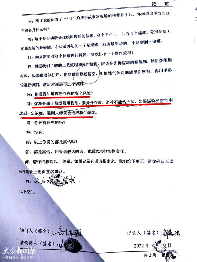 对此,郑先生和陈先生都表示不解:“本地最权威的主管部门,要回答一个专业领域的问题,以及煤粉是不是危险物品,还需要咨询法律顾问才能答复?在应急局的调查笔录当中,涉事单位泓奕机械厂生产部长就承认了煤粉是危险物品”。从两位当事人的反映情况看,每次向应急局书面或口头反映上述质疑,应急局方面都只是简单重复一遍原《调查报告》叙述的内容,完全回避了核心实质问题。