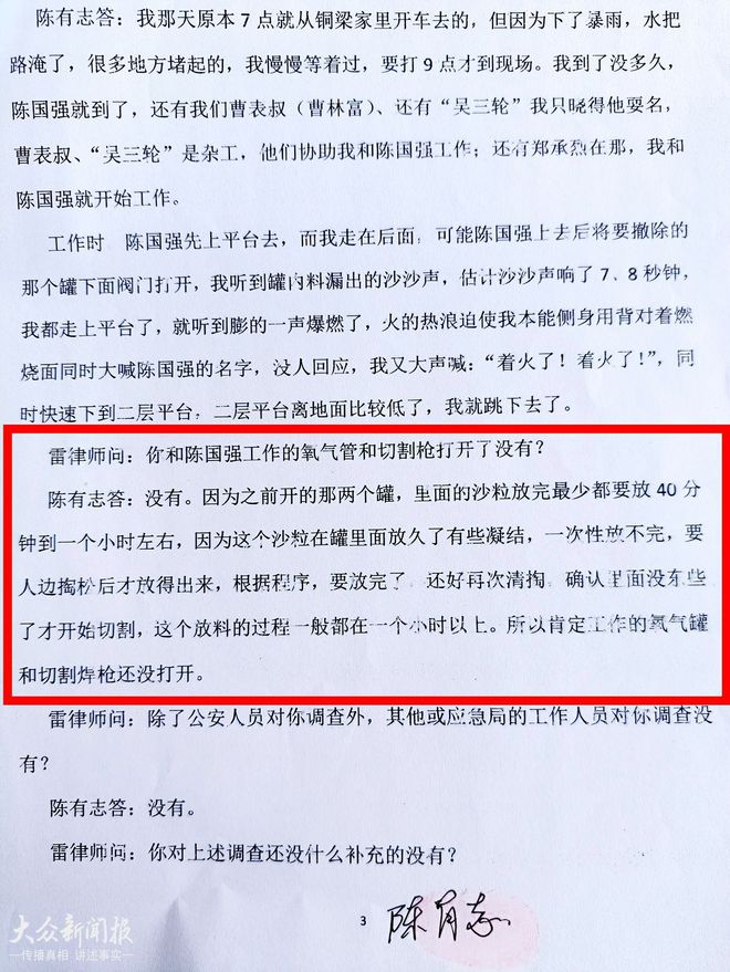 (而伤者陈有志告诉调查律师,根本没有进行焊割,就发生了爆炸。)
