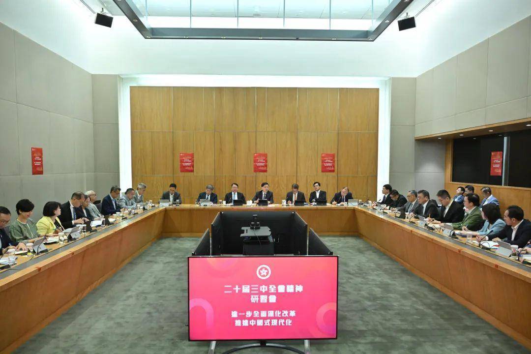 行政长官李家超8月9日在行政长官办公室亲自主持研习会,与司局长等特区政府主要官员一同认真学习和深入理解中国共产党第二十届中央委员会第三次全体会议精神,以带领特区各界全面学习、落实和贯彻三中全会精神。